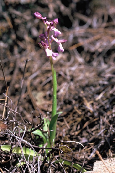 Am Aufgang zu den Feuerstellen von Chimaera. Buschiger Hang auf Kalk. 70 m. nn na. 1995-04-06 Heimeier & Gaßner