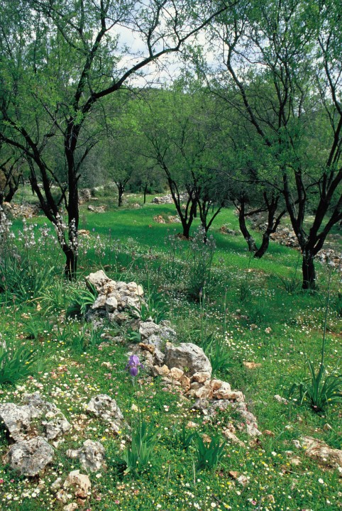 N des Friedhofs von Ağullu. Oliven-/Mandelkulturen auf Terrassen. Grasiger Unterwuchs. Kalk. 525 m. nn na. 1996-04-05 Baumgartner, Gembardt, Heimeier & Mark