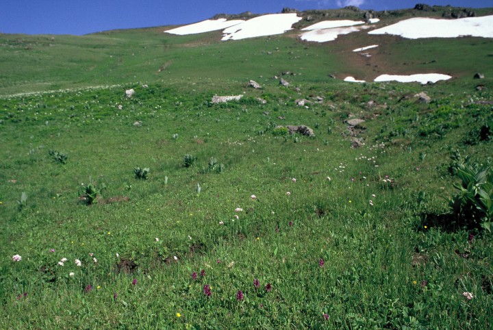 N-Auffahrt zum Soğanlı-Pass. 55.4 km ab Of. S Ortsausgang Karaçam Hangwiese. Keine Höhenangabe. 2500 hb. 1988-05-25 Gembardt et al.