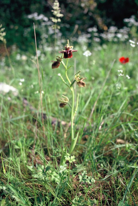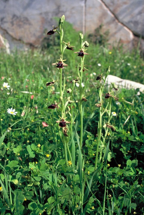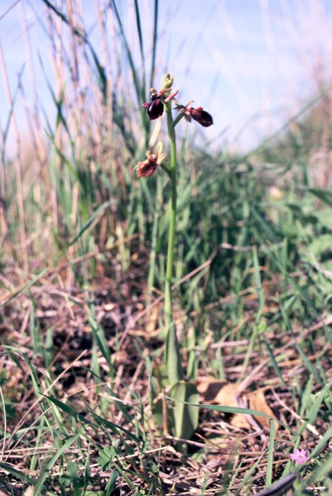 Von Selçuk nach Doğanbey. 5.4 km ab Abzweig Ahmetbeyli (=Notion). Grasiger Hang mit Gebüsch. 40 m. nn hb. 1989-04-01 Kalteisen & Hiller