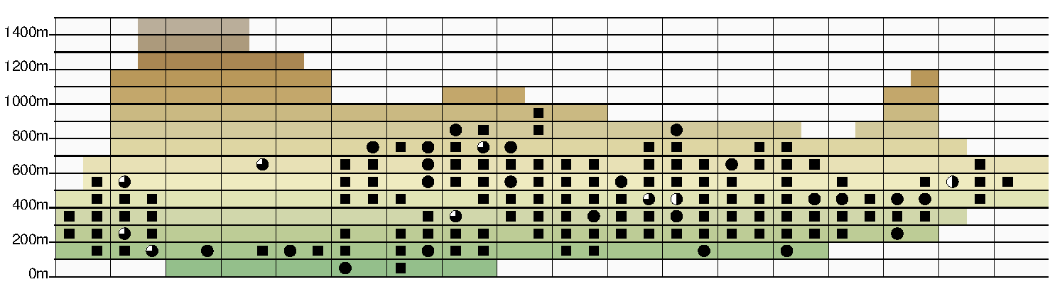 Vorwarnstufe (V): BW, Ober- u. Hochrhein, Nördliche u. Südliche Gäulandschaften, Schwäbische Alb, Alpenvorland; fehlend (-): Schwarzwald, Odenwald